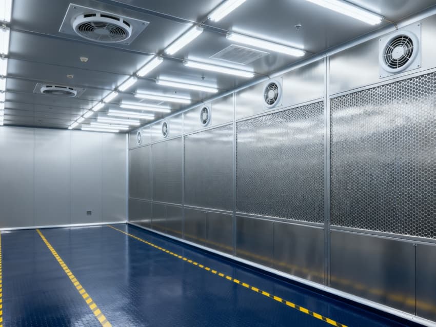 車間的干凈程度達(dá)到萬級(jí)標(biāo)準(zhǔn)(相當(dāng)于國際標(biāo)準(zhǔn)ISO8級(jí)),每立方米空氣里,直徑0.5微米以上的灰塵顆粒不會(huì)超過352000個(gè)。我們用初效、中效、高效三層過濾網(wǎng)過濾空氣,再搭配頂部送風(fēng)、底部回風(fēng)的設(shè)計(jì),每小時(shí)能把車間空氣換新20到25次。墻面用的是不容易吸附灰塵、能抗靜電的彩鋼板,地面鋪著耐磨的環(huán)氧樹脂材料,所有拼接的地方都做了密封。車間里的溫度一直保持在21℃到25℃之間,濕度控制在40%到50%,還專門安裝了防靜電設(shè)備,這樣就能防止灰塵和靜電影響新能源產(chǎn)品的質(zhì)量,讓生產(chǎn)出來的東西更可靠。