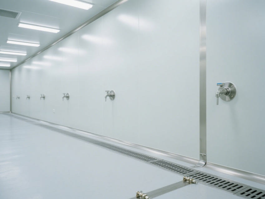 效果圖從不同視角展現空間優勢:正面視角呈現開闊的通透格局,無設備干擾更顯規整;角落特寫聚焦圓弧墻角與無縫拼接工藝,規避積塵死角;側視角度凸顯層流送風系統與高效過濾裝置,直觀傳遞潔凈技術核心;局部細節圖則清晰展示地面防滑紋理、墻面抗污涂層等實用設計。?