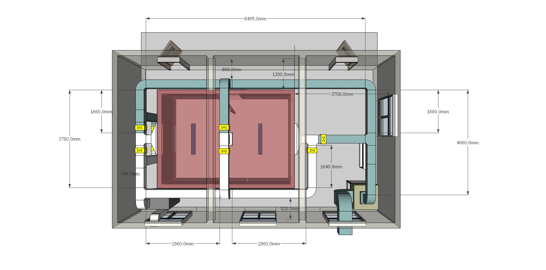 實驗內(nèi)室尺寸: 5m×3.5m×2.5m(長×寬×高)。