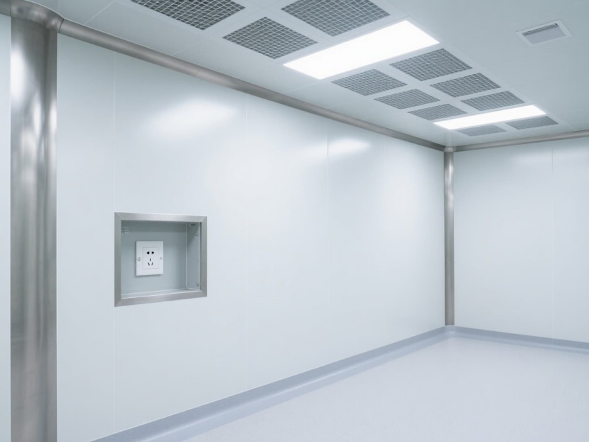 車間以白色抗菌彩鋼板為主體建材,搭配淺灰防靜電地坪,墻面與地面的圓弧過渡設計消除衛生死角,便于徹底清潔消毒。頂部嵌入式高效送風口形成垂直層流,配合側下回風系統,實現每小時15-25次的空氣置換,持續維持潔凈正壓。?